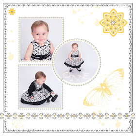 And the frame around the smaller picture of Jillian is from the You are My Sunshine kit.  Sorry the pictures are so small, they blur is I enlarge them.  I love the you are my sunshine kit.  It is all greys and yellow, very trendy, and the papers and embellishments are very pretty.